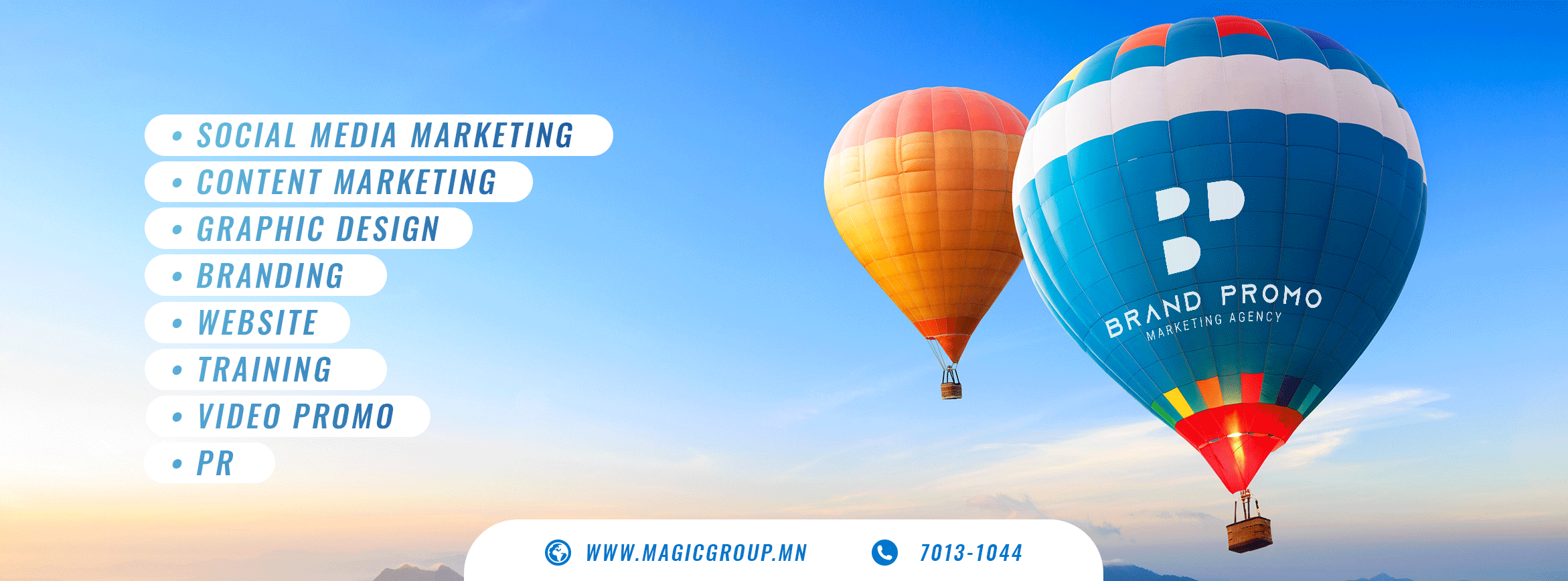 Мэжик Групп нь "МАРКЕТИНГИЙН АУТСОРСИНГ" үйлчилгээ үзүүлж эхэллээ. 2019-05-17 BRAND PROMO MARKETING AGENCY нь 2019 онд MAGIC GROUP -с салбарлан гарсан Маркетингийн аутсорсинг үйлчилгээний компани юм. Цааш нь...