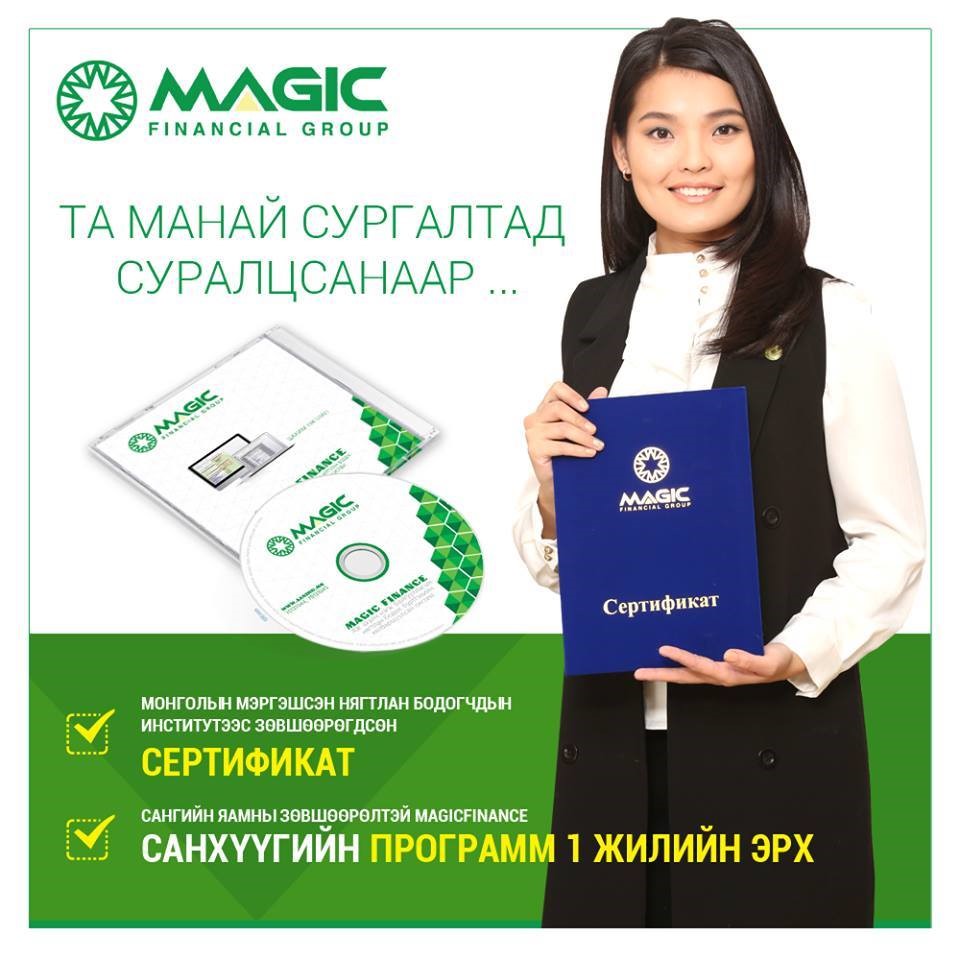 - Сангийн яамны зөвшөөрөлтэй Magic_Finance санхүүгийн програм 1 жилийн эрхтэй танд олгогдох болно.