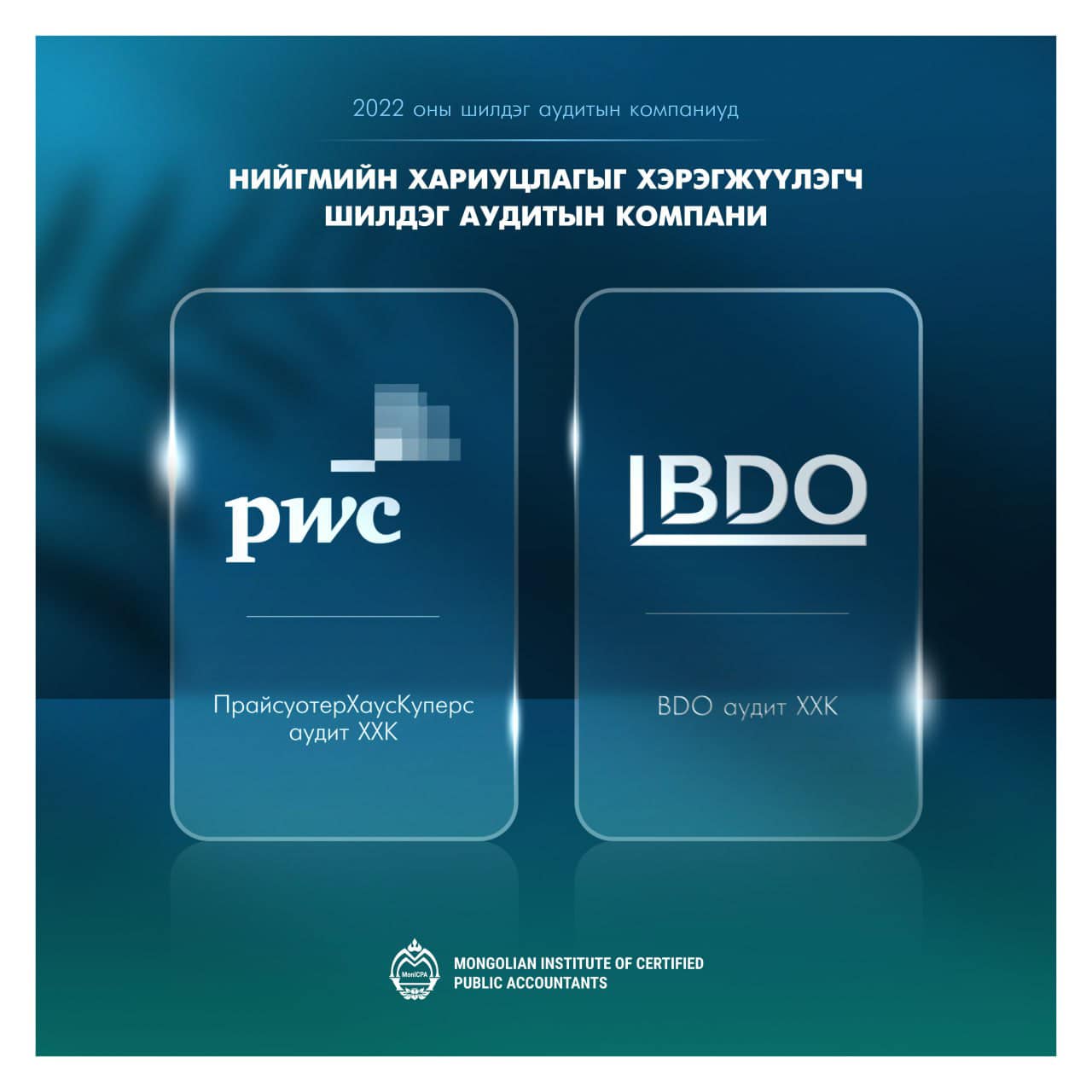Монголын Мэргэшсэн нягтлан бодогчдын Институтээс жил бүр нийт аудитын компаниудаас дараах 3 номинациар аудитын компаниудыг шалгаруулж, гишүүд олон нийтдээ мэдээлэлдэг билээ.