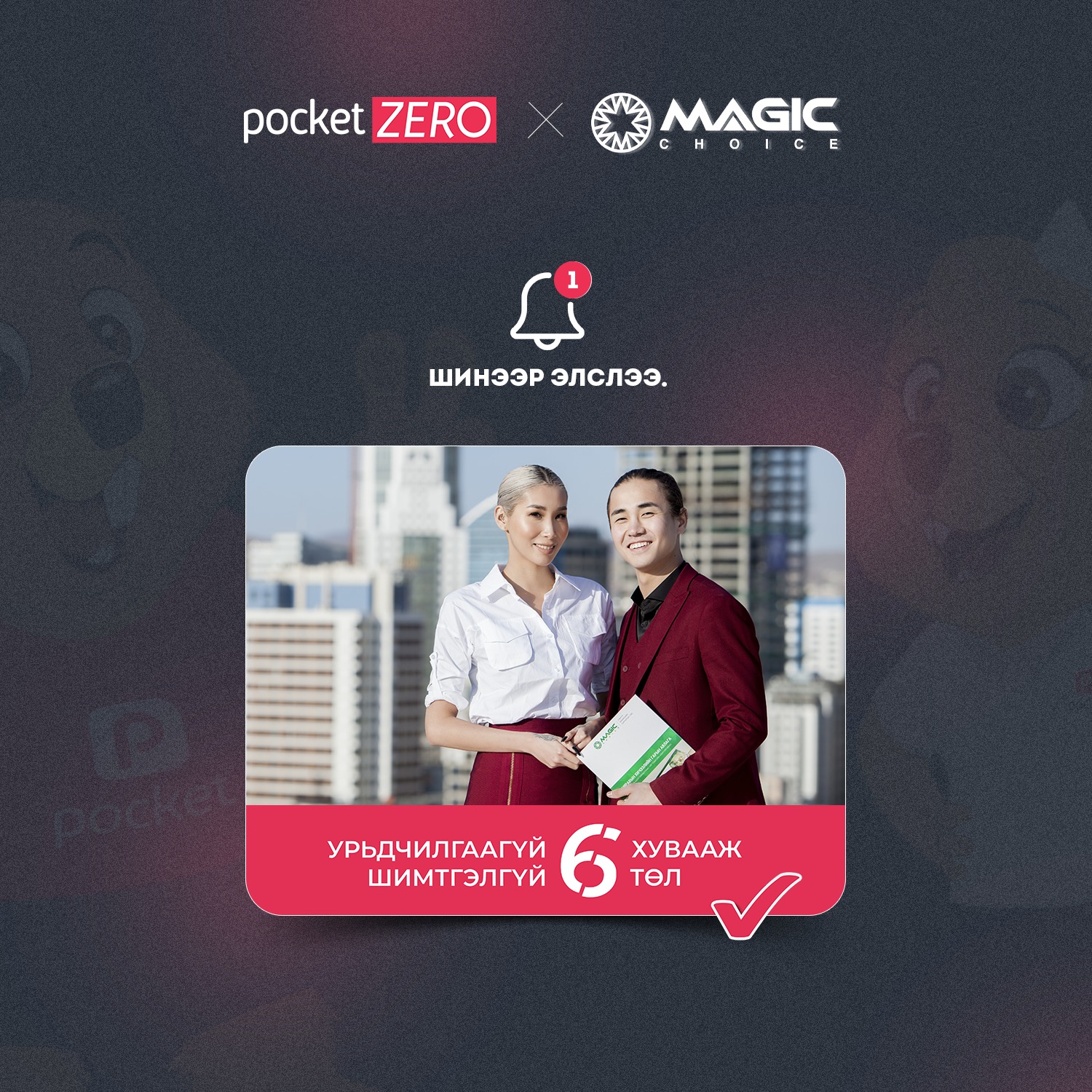 Тус гэрээгээр манай байгууллага нь санхүүгийн бүх сургалтуудаа цахим хэлбэрээр төлбөр тооцоогоо хийх, сонгосон сургалтын төлбөрөө#PocketZero үйлчилгээг ашиглан урьдчилгаагүй 6 хуваан төлөх нөхцөлөөр хүссэн сургалтдаа суралцах боломжийг покет аппликейшнээр дамжуулан эрхэм суралцагч нартаа олгож байгаа шинэ үйлчилгээ юмаа.