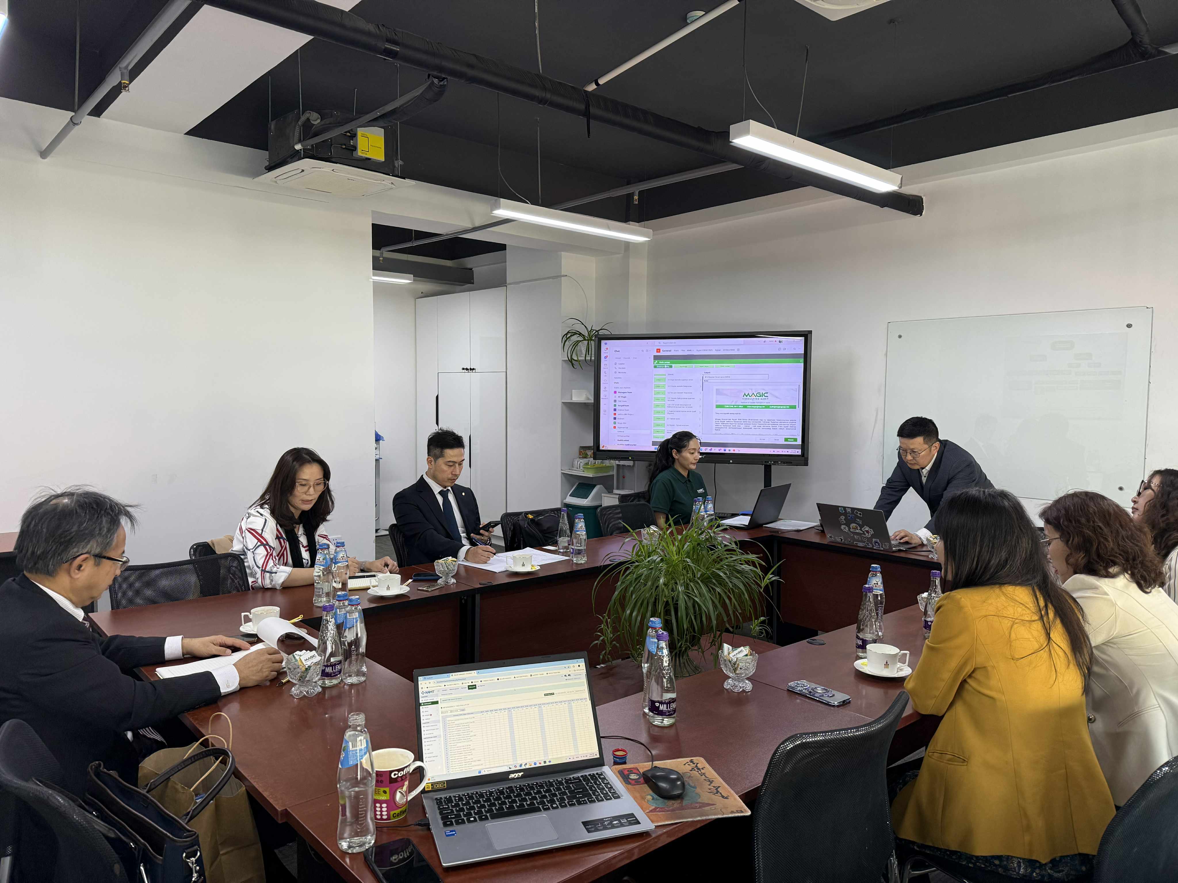 Дээрх төлөөлөгчдийг гүйцэтгэх захирал С.Мөнхбаяр хүлээн авч уулзсан ба компанийн үйл ажиллагаа болон цахим программ хөгжүүлэлтийн нөхцөл байдлын талаар танилцуулж, харилцан туршлага солилцож ярилцлага хийлээ.